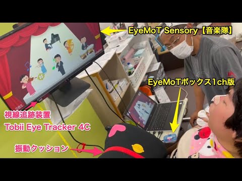 230825高3年-視線追跡装置Tobii Eye Tracker 4CとEyeMoT Sensoryの音楽隊を利用して視線入力で楽器を奏でる20230901_#0883 教材活用動画 X Facebook はてブ LINE コピー 2023.09.01 この記事は約1分で読めます。 230825高3年-視線追跡装置Tobii Eye Tracker 4CとEyeMoT Sensoryの音楽隊を利用して視線入力で楽器を奏でる20230901_#0883特別支援学校に在籍する高校3年生女子が、Tobii Technology社製視線追跡装置Tobii Eye Tracker 4Cを利用して、Windows用重度障害児・者支援アプリEyeMoT Sensoryの音楽隊コンテンツで楽器を奏でて...