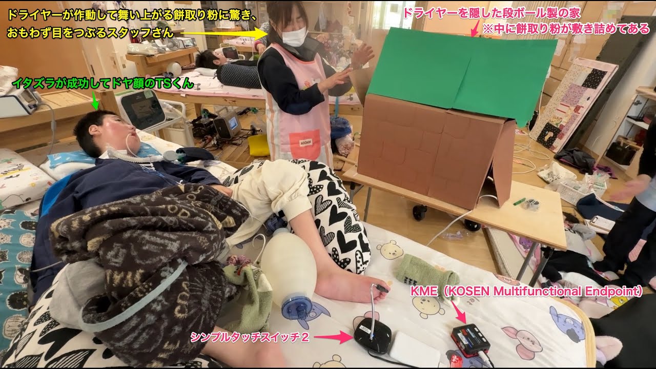 250107中2年-KMEに接続したシンプルタッチスイッチ2に左足親指で入力してSwitchBotプラグミニに繋いだドライヤーを作動させてイタズラする20250108_01#0945 教材活用動画 X Facebook はてブ LINE コピー 2025.01.08 この記事は約1分で読めます。 250107中2年-KMEに接続したシンプルタッチスイッチ2に左足親指で入力してSwitchBotプラグミニに繋いだドライヤーを作動させてイタズラする20250108_01#0945特別支援学校(病弱)に在籍する中学2年男児が、KOSEN-AT で開発中のKME(KOSEN Multifunctional Endpoint) ...