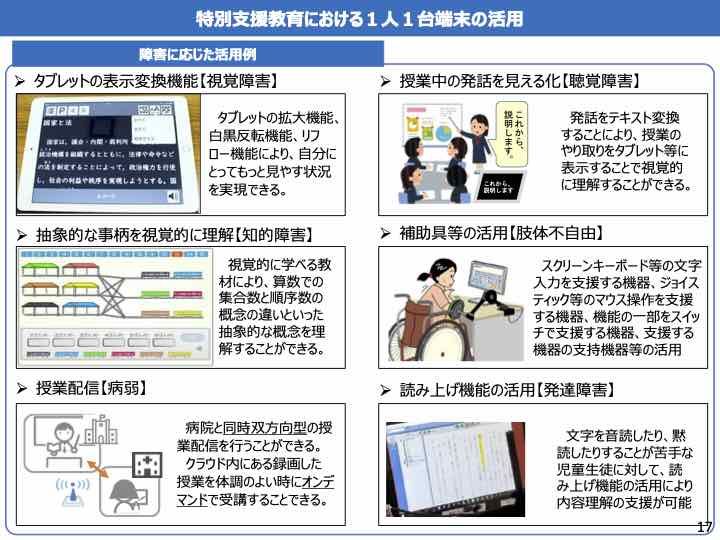 ここでは9ページにわたって資料があり、特別支援教育でのICT活用について