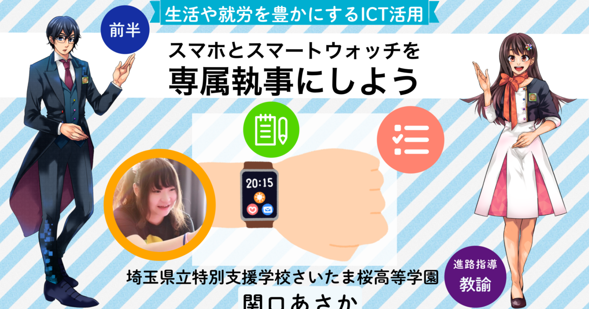 『生活や就労を豊かにするICT活用~スマホとスマートウォッチを専属執事にしよう~』 関口あさか (埼玉県立特別支援学校さいたま桜高等学園 進路指導専任) 1.忘れ物女王からの転身