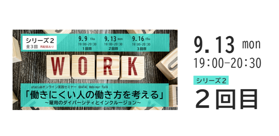 【atacLabオンライン実践セミナー】「働きにくい人の働き方を考える シリーズ2 第2回」9/13
