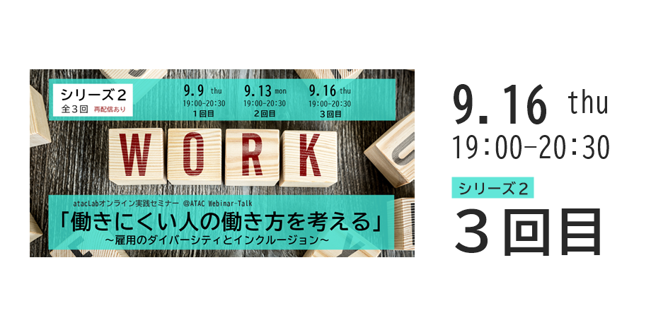 【atacLabオンライン実践セミナー】「働きにくい人の働き方を考える シリーズ2 第3回」9/16
