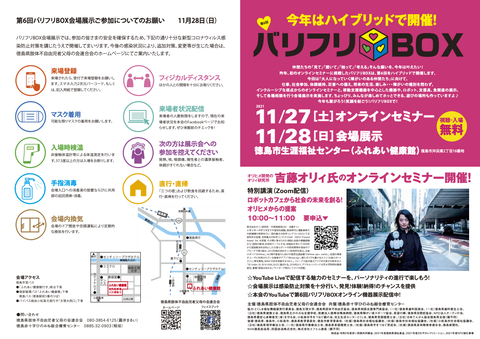 徳島県肢体不自由児者父母の会連合会さんが「障がい児者のためのモノと情報と遊びの広場」というコンセプトで毎年開催しておられるイベント【バリフリBOX】ですが、今年の第6回は2021年11月27日(土曜日)はオンラインセミナー、11月28日(日...