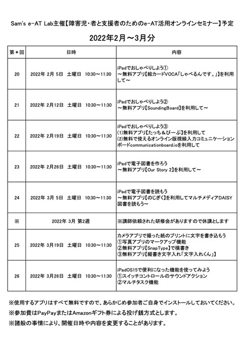 再開します〜障害児・者と支援者のためのe-AT活用オンラインセミナー : Sam's e-AT Lab