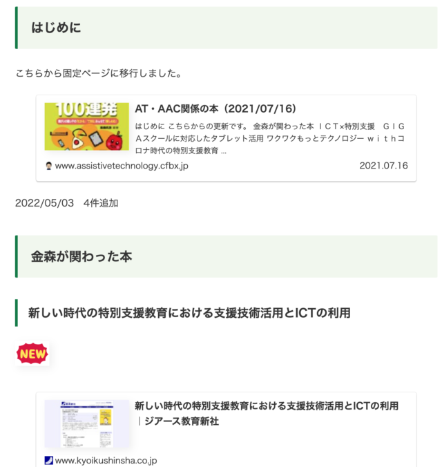 書籍情報を追記しました 書籍・雑誌 X Facebook はてブ LINE コピー 2022.05.03 この記事は約1分で読めます。 書籍情報に新たに4冊の情報を追記しました。 AT・AAC関係の本(2024/01/30)はじめに2024/01/30 6件追加2022/05/03 4件追加2022/08/11 2件追加2022/08/28 電子書籍版を掲載2022/11/30 2件、3冊追加金森が関わった本Society5.0で実現する社会を見据えた肢体不自...