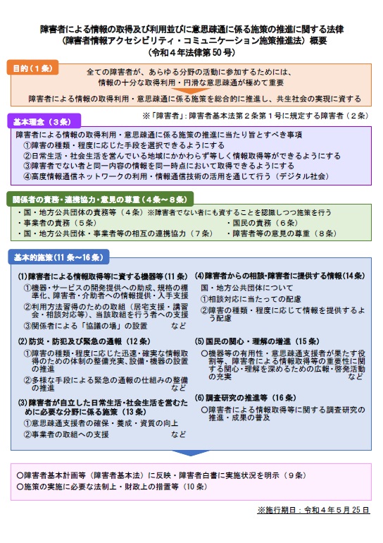 「障害者による情報の取得及び利用並びに意思疎通に係る施策の推進に関する法律案」(いわゆる、障害者情報アクセシビリティ・コミュニケーション施策推進法案)