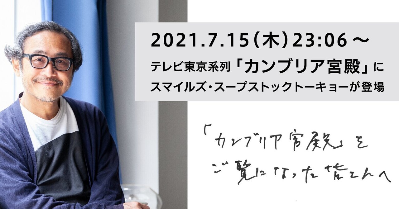 こんにちは。スープストックトーキョー広報です。このたび、7月15日放映の日経スペシャル「カンブリア宮殿」にて、スマイルズとスープストックトーキョーを初めて特集していただきました!番組をご覧いただいた皆様、ありがとうございました。 (まだご覧...