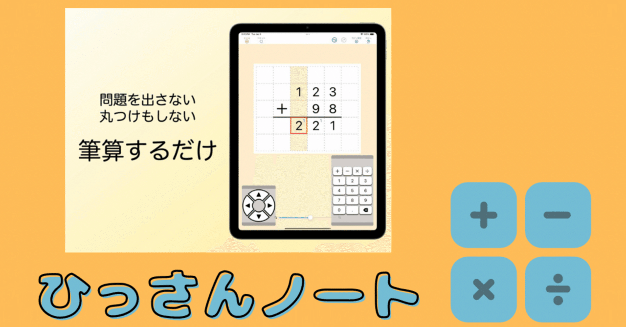 これはすごい!! 筆算のアシストとしては最強だと思います!! ひっさんノート『ひっさんノート』は筆算をする「だけ」のアプリです。 計算ドリルのアプリではありません。 丸つけのアプリでもありませんapps.apple.com 素敵なアプリ...