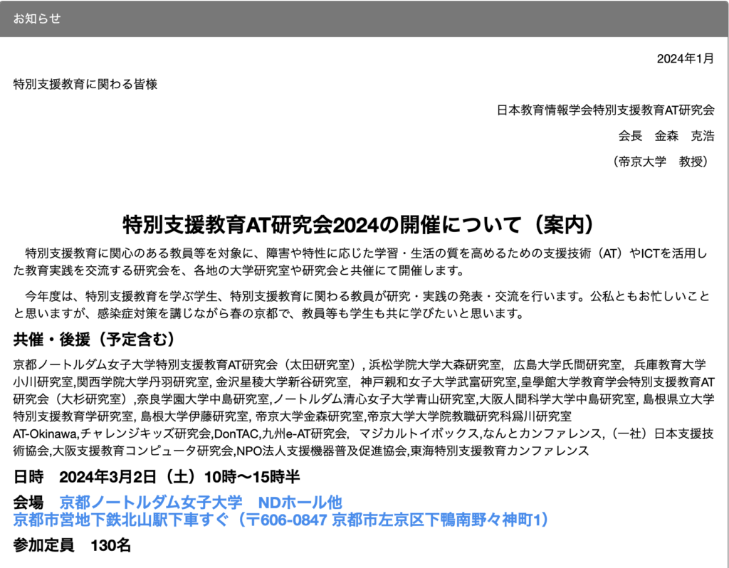 いよいよ、明日は日本教育情報学会特別支援教育AT研究会です。