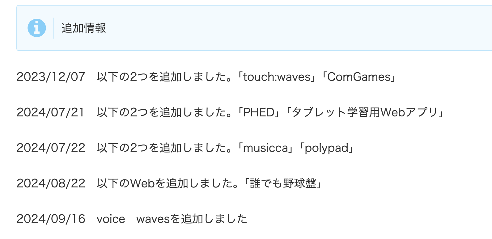 はじめにこちらの続き固定ページにしました。追加情報2023/12/07 以下の2つを追加しました。「touch:waves」「ComGames」2024/07/21 以下の2つを追加しました。「PHED」「タブレット学習用Webアプリ」20...