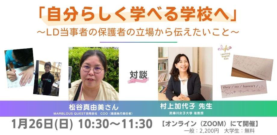 「自分らしく学べる学校へ」~LD当事者の保護者の立場から伝えたいこと【松谷真由美さんと村上加代子先生による参加型の特別対談!】