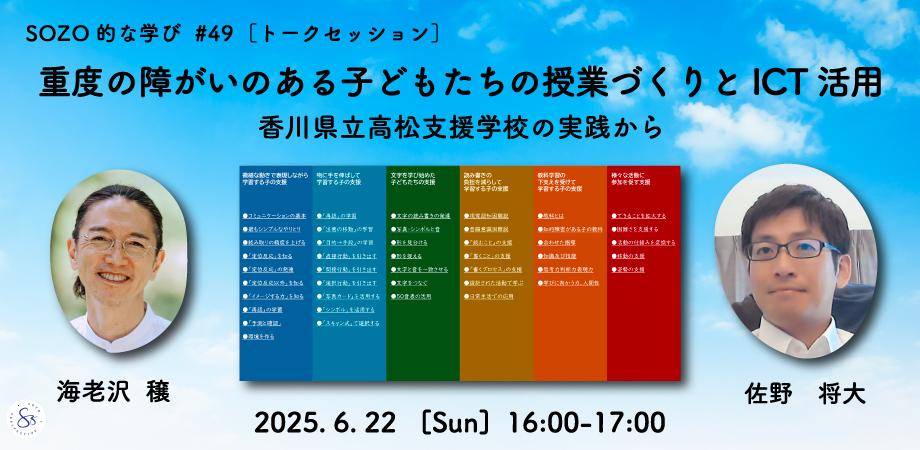 6月22日(日) 重度の障がいのある子どもたちの授業づくりとICT活用 香川県立高松支援学校の実践から