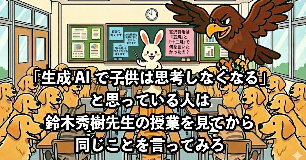 「生成AIで子供は思考しなくなる」と思っている人は、鈴木秀樹先生の授業を見てから同じことを言ってみろ|前多昌顕
